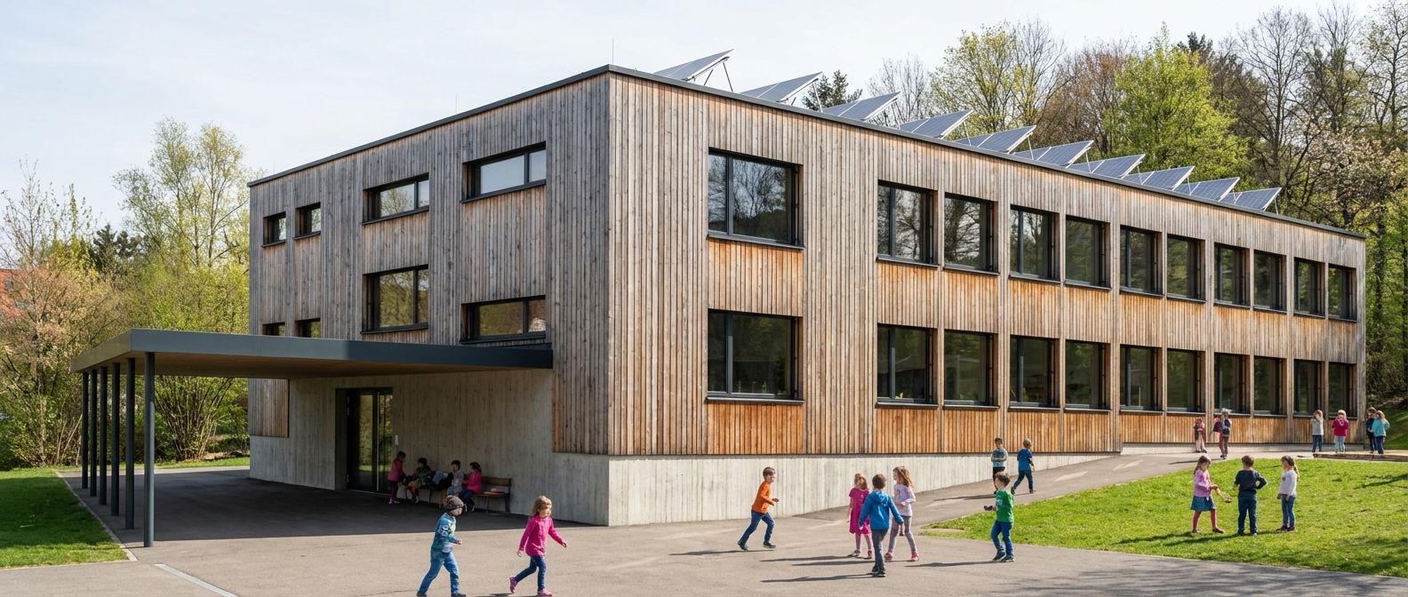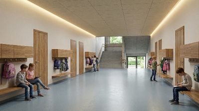 Mit diesem zweckmässig und kompakt gehaltenen Baukörper kann das geforderte Raumprogramm vollständig umgesetzt werden, ohne dass aus schulischer Sicht Abstriche gemacht werden müssen.